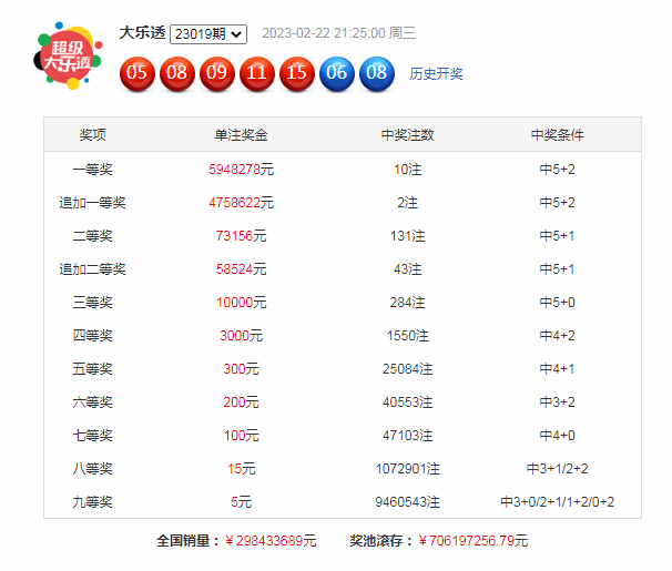 体彩大乐透第2023019期开出奖号:05、08、09、11、15+06、08。其中前区奖号012路比为2:0:3皇冠源码出租,奇偶比为4:1,后区开出0路号码和2路号码。