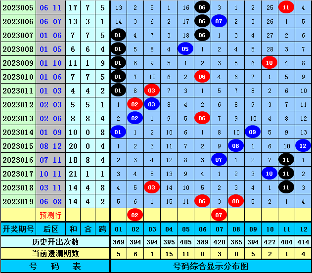 前区第一位:在历史第020期同时开奖中踱步领域在01-16区段,平均值为6.8,奇偶比为8:8,现在奇数号码遗漏了1年,本年第020期在意奇数号码回补,关心号码07。