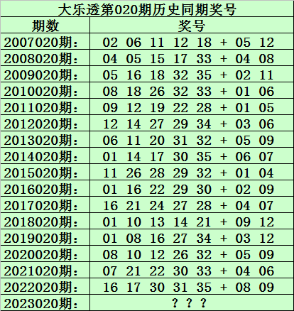 黑天鹅大乐透第2023020期历史同时奖号分析